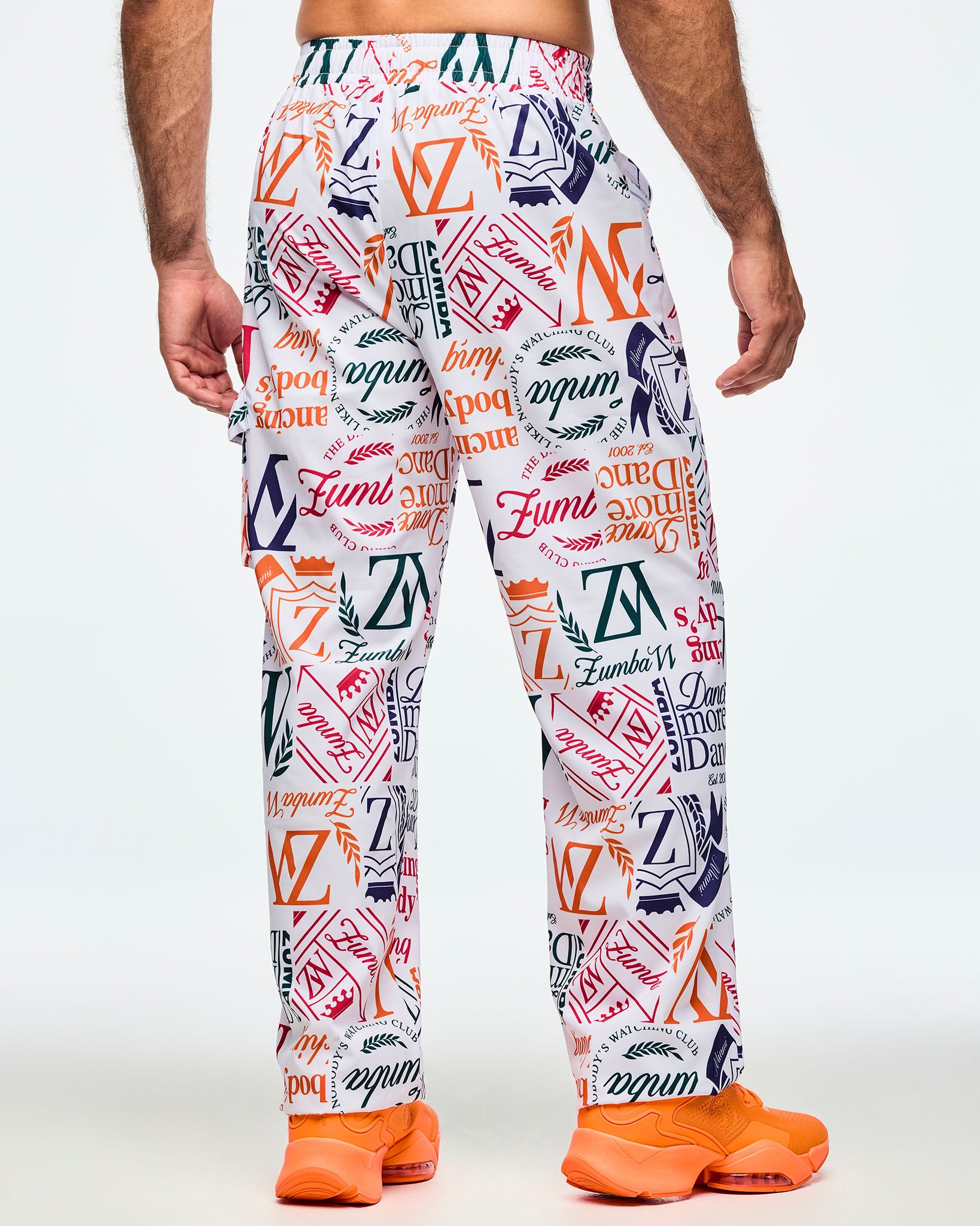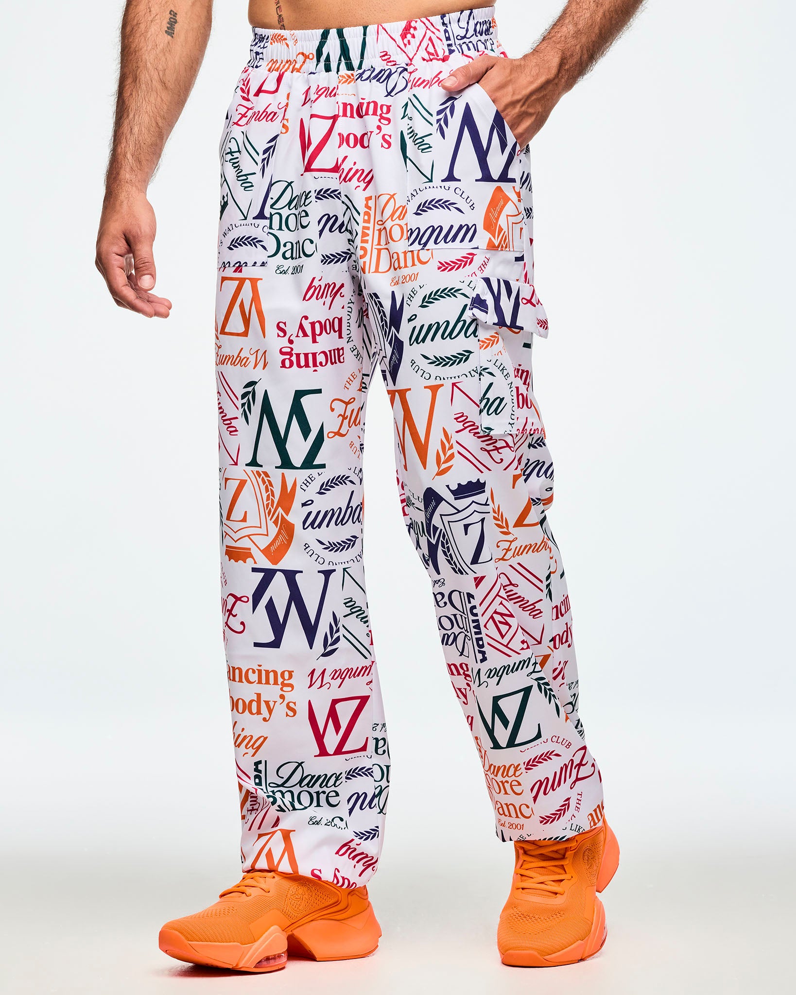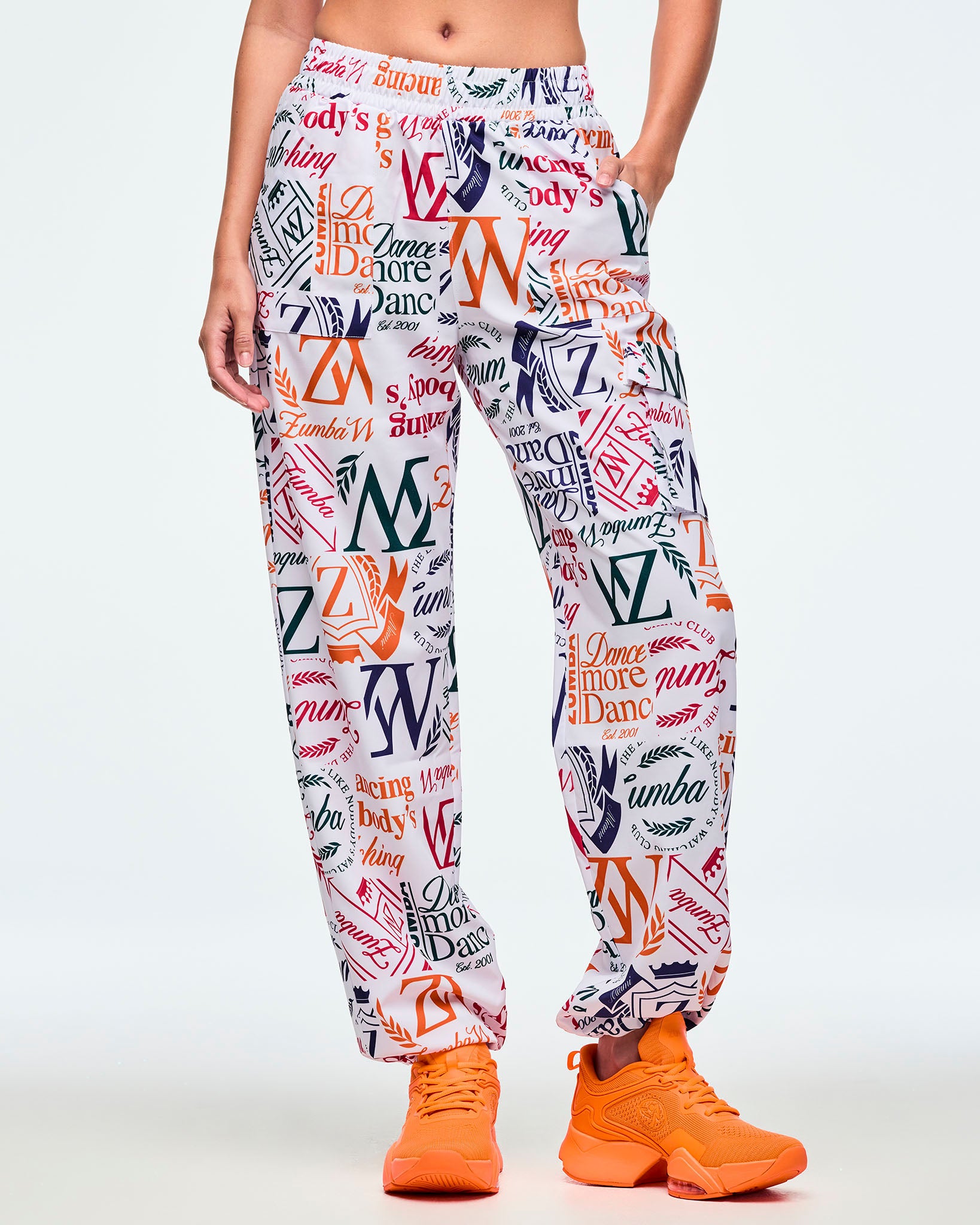 These high-rise cargo pants feature a 31.25" inseam and an encased elastic waistband for added comfort. Adjustable bungee cords at the leg openings ensure a customizable fit, while front patch pockets provide convenient storage. Showcasing a Zumba-exclusive all-over print, they offer an oversized fit and long length for a bold, comfortable look.
