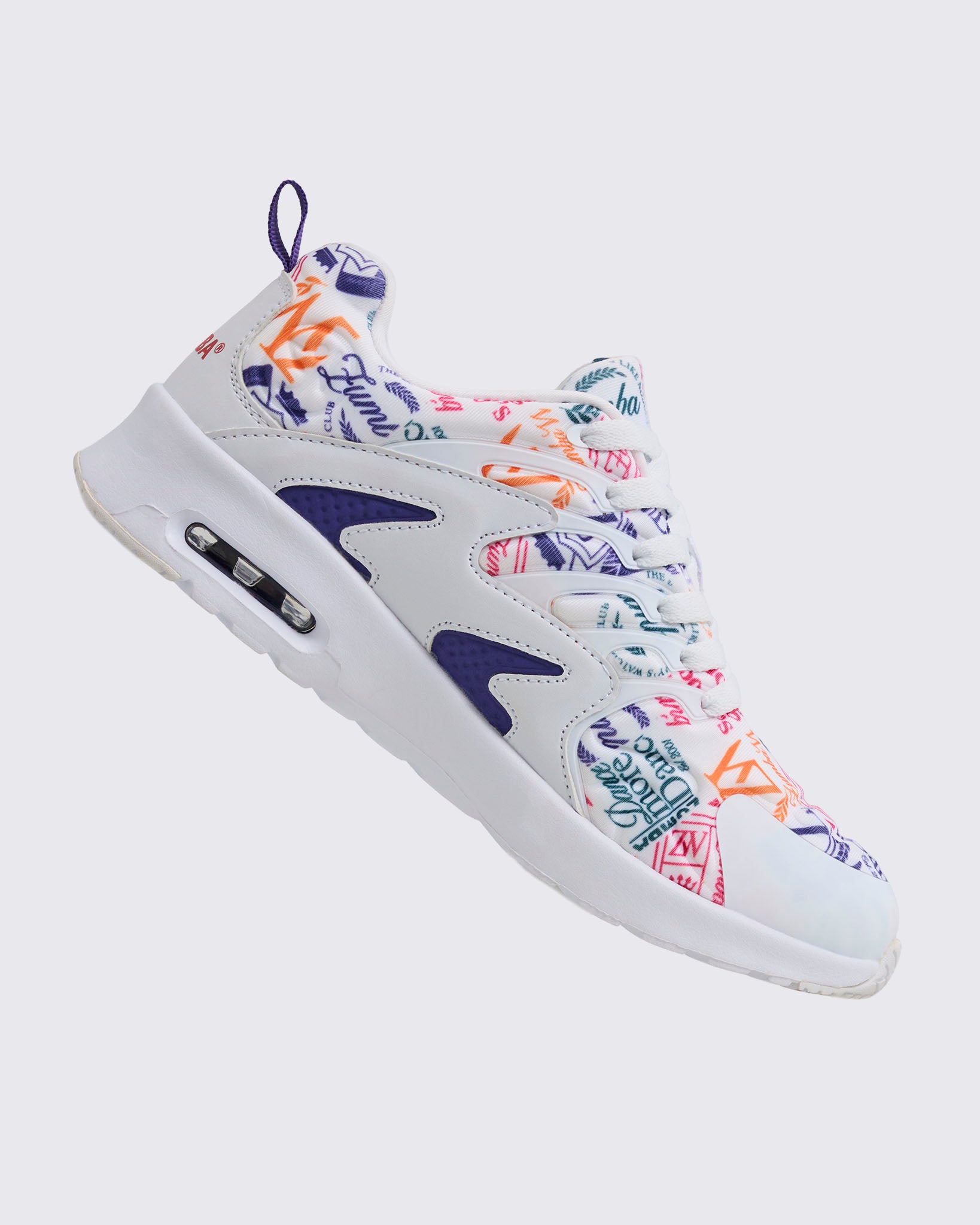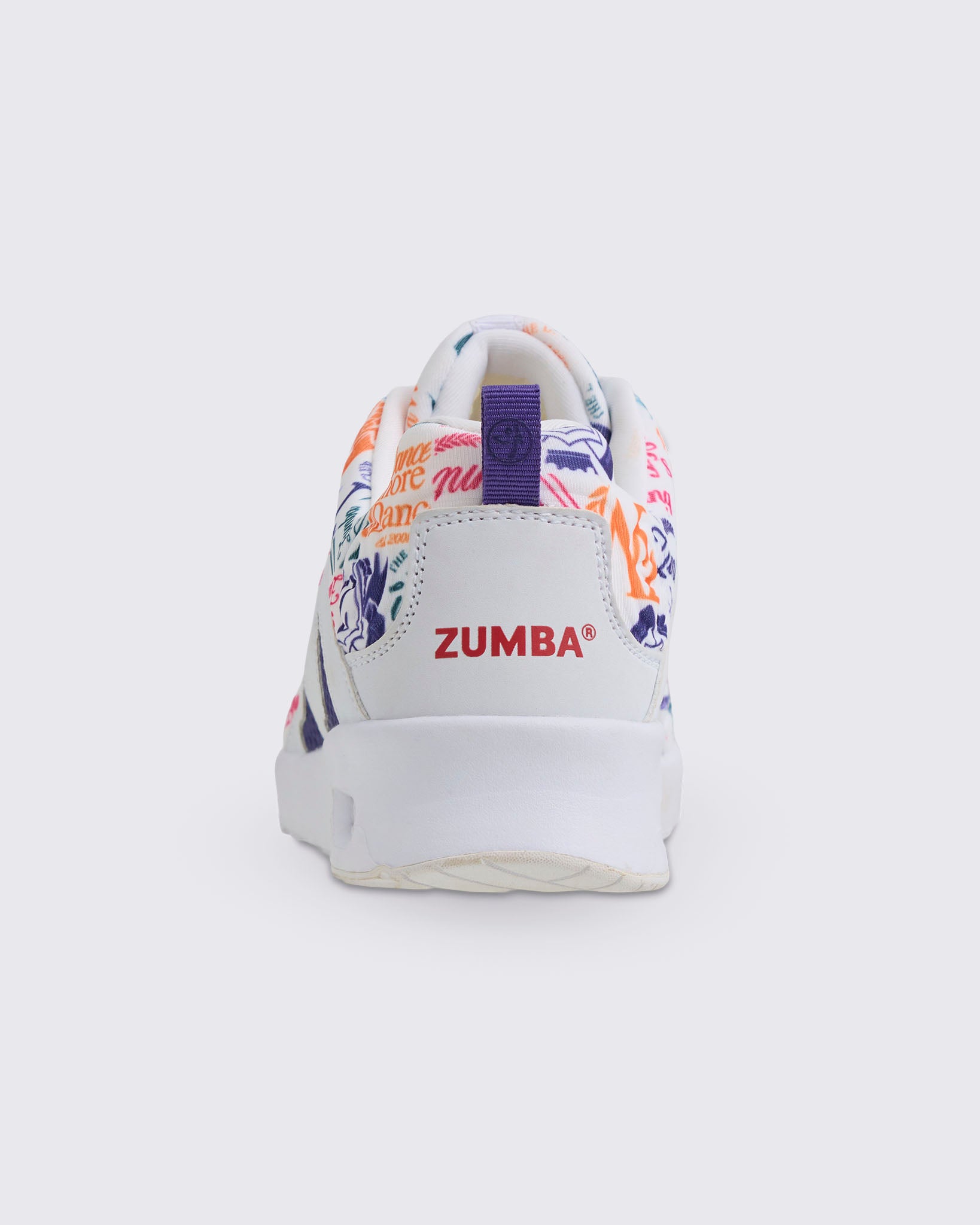 The Zumba Printed Air Lo features a low-top design with advanced Air technology for superior impact protection and responsiveness. Its printed molded foam upper is both durable and lightweight, while the soft cushioning foam sole provides comfort. The rubber waffle tread around the perimeter ensures reliable grip, complemented by back pull tabs for easy wear.